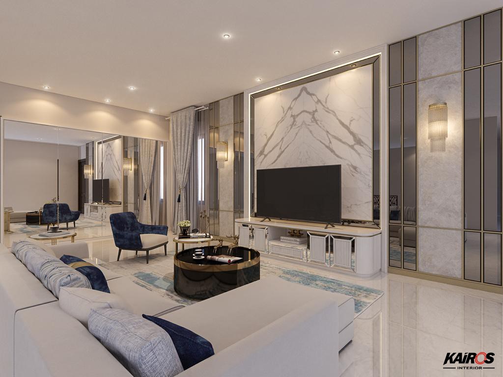Atur posisi furniture mengeliling pada ruang keluarga untuk memberikan kenyamanan dan kesenangan saat menghabiskan waktu bersama anggota keluarga.