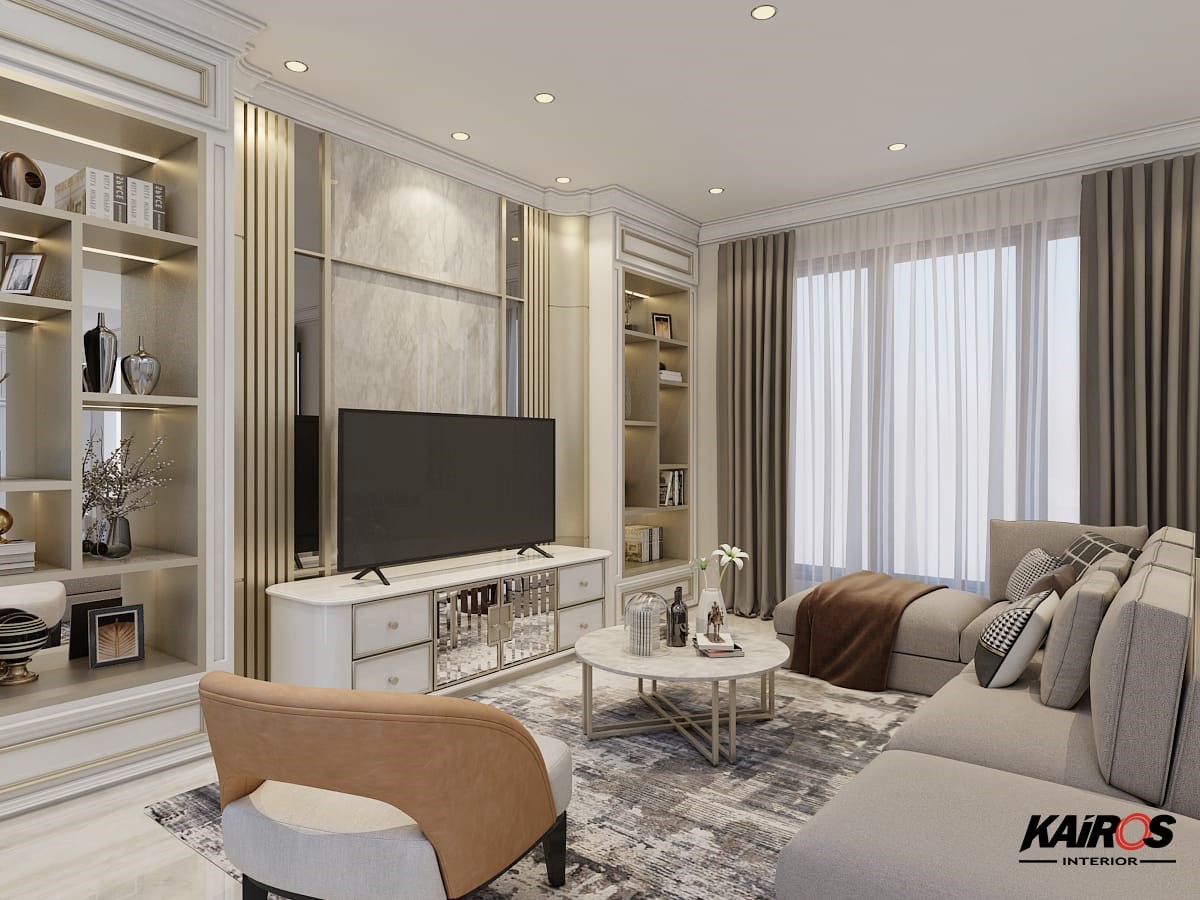 Hunian dengan gaya desain klasik modern biasanya menggunakan warna netral seperti putih dipadukan dengan warna emas yang akan membuat nuansa megah dan mewah pada hunian.
