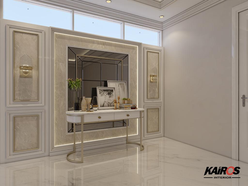Aksen Profil berupa lis pada dinding dengan berbagai pilihan yang diaplikasikan di dinding dan plafon. Aksen tersebut membuat interior rumah menjadi terlihat mewah.