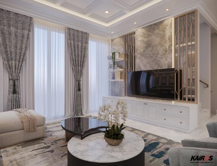 Ciptakan ruang keluarga yang nyaman dan tenang dengan memadukan gaya modern classic untuk memberikan kesan mewah dan elegan.